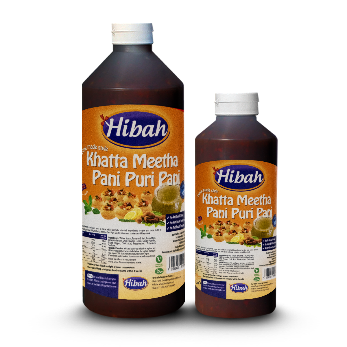 Hibah Finest Foods brings you tasty delight of the east. Pani Puri also known as Gol Gappa are everyday treat in India, Pakistan, Bangladesh Middle Eastern Countries and now also available in western countries as well. Hibah Khatta Meetha Pani Puri pani is made with Tamarind and carefully selected spices to give you same sweet and tangy taste as homemade Khatta Meetha Pani Puri Pani.